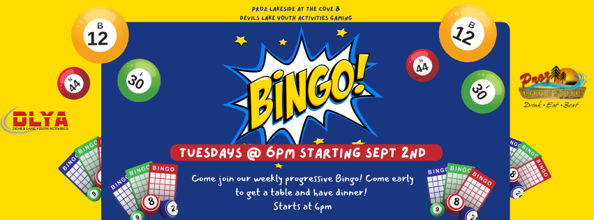 Bingo Tuesdays @ 6pm $5500 PROGRESSIVE JACKPOT September 20, 2025 02:00 PM until May 30, 2026 02:00 PM